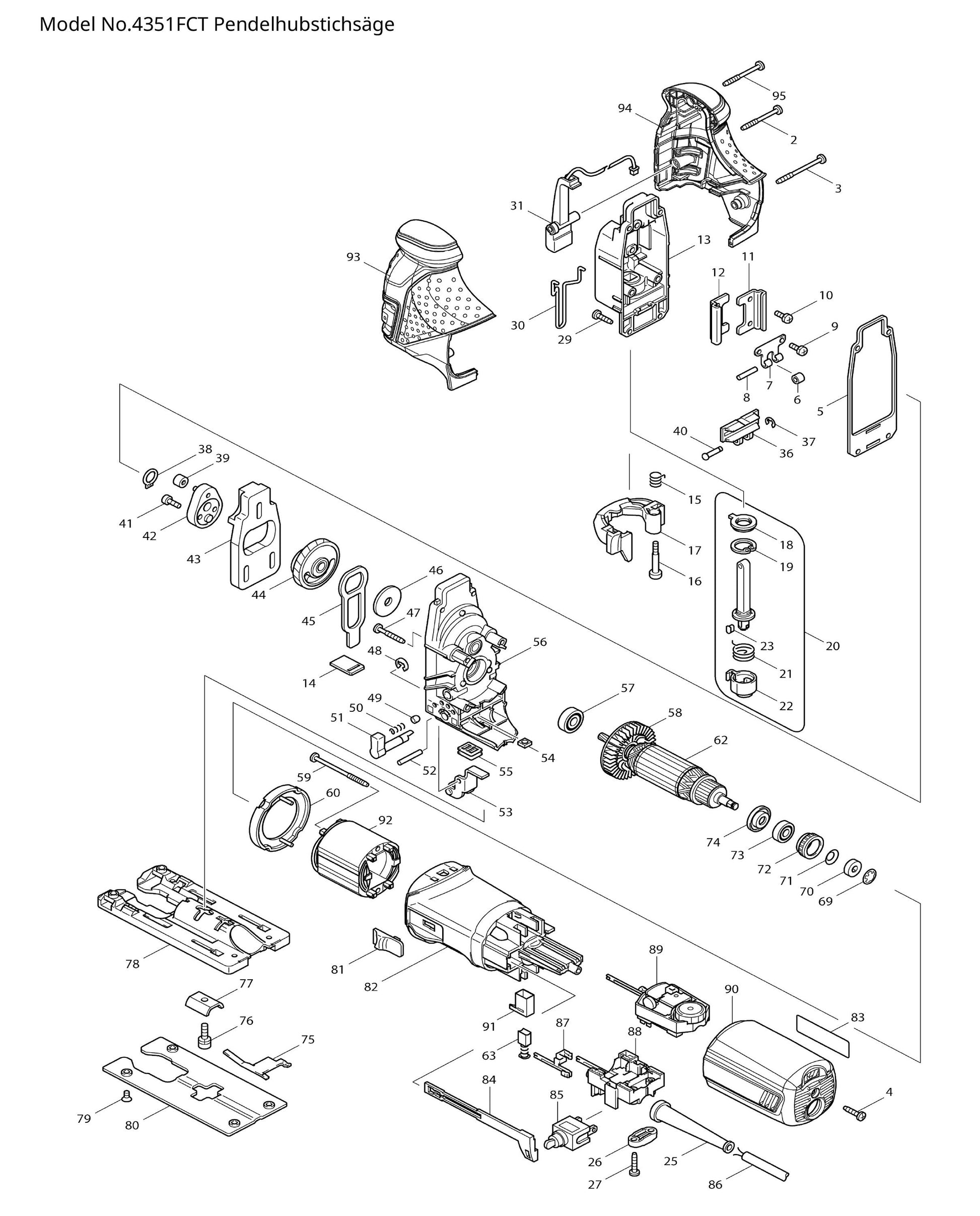 Hier findest du alle Ersatzteile für deine Pendelhubstichsäge 4351FCT von Makita. Unsere Ersatzteile stammen alle vom Hersteller Makita.