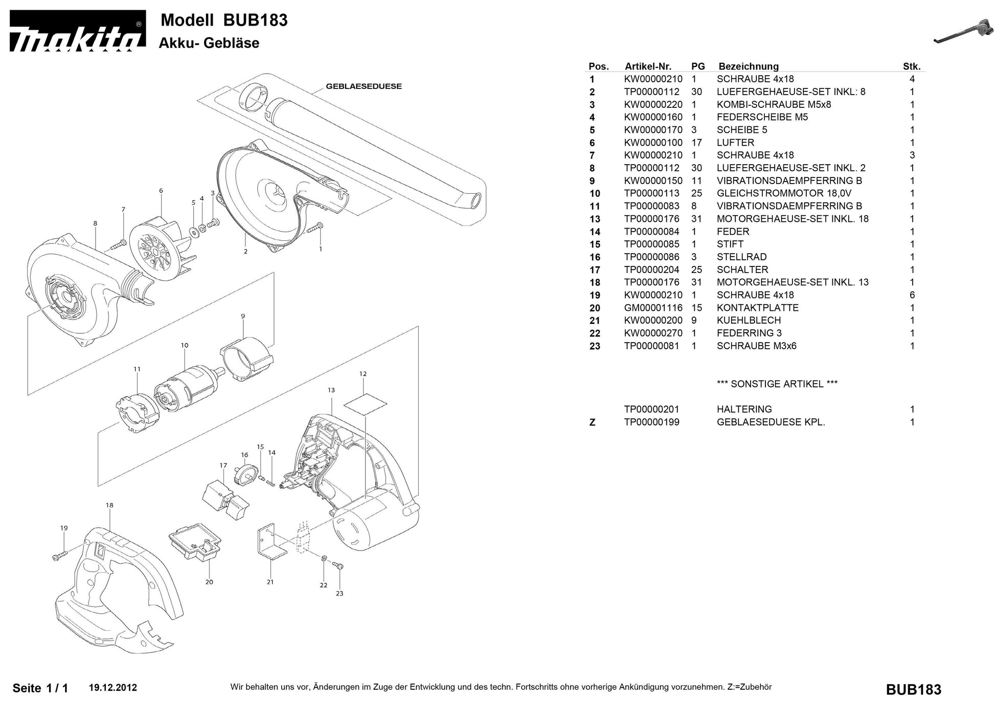 Pos. 10 GLEICHSTROMMOTOR 18,0V TP00000113 41,18 €/Stück |