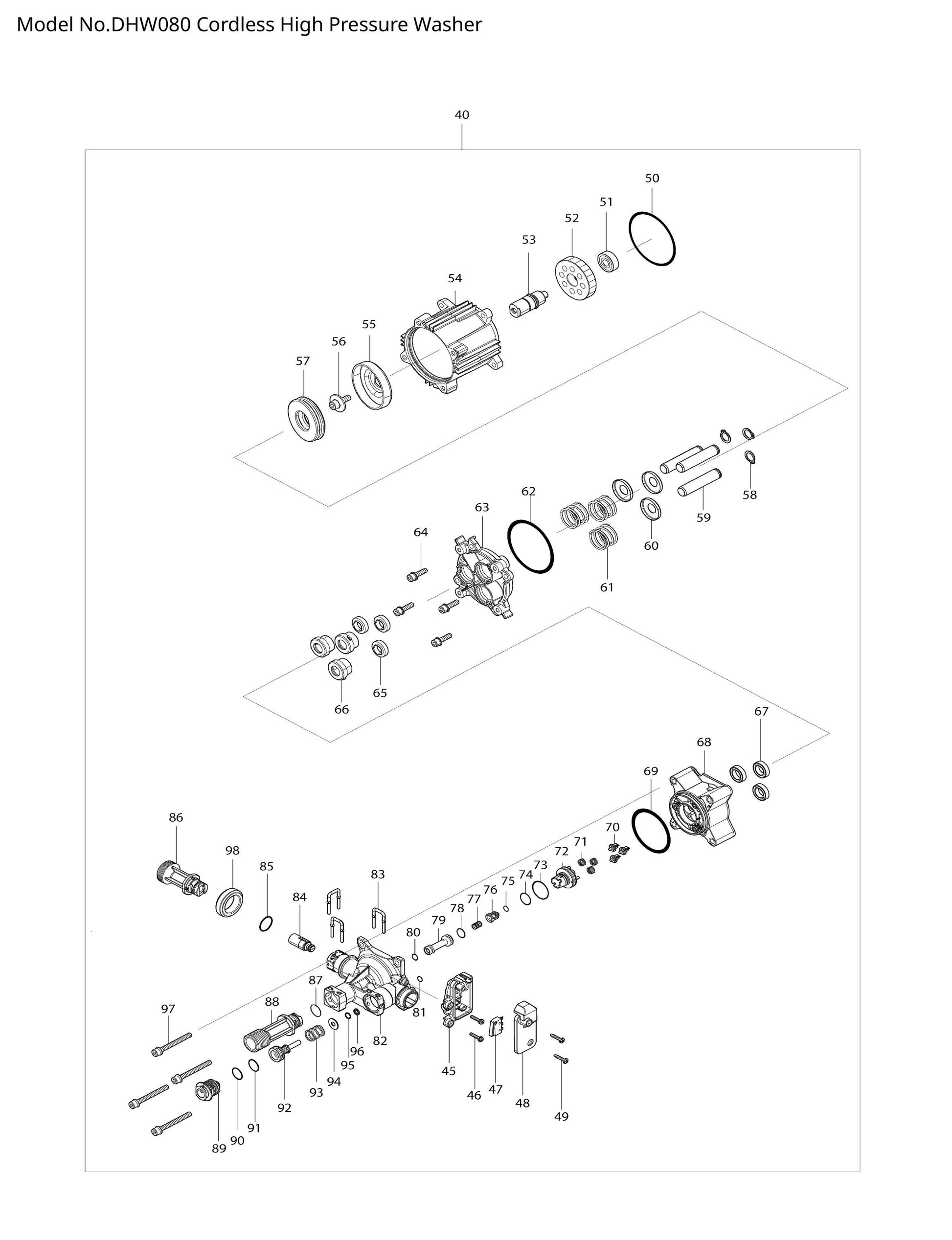 Hier findest du alle Ersatzteile für deinen Akku-Hochdruckreiniger DHW080 von Makita. Unsere Ersatzteile stammen alle vom Hersteller Makita.
