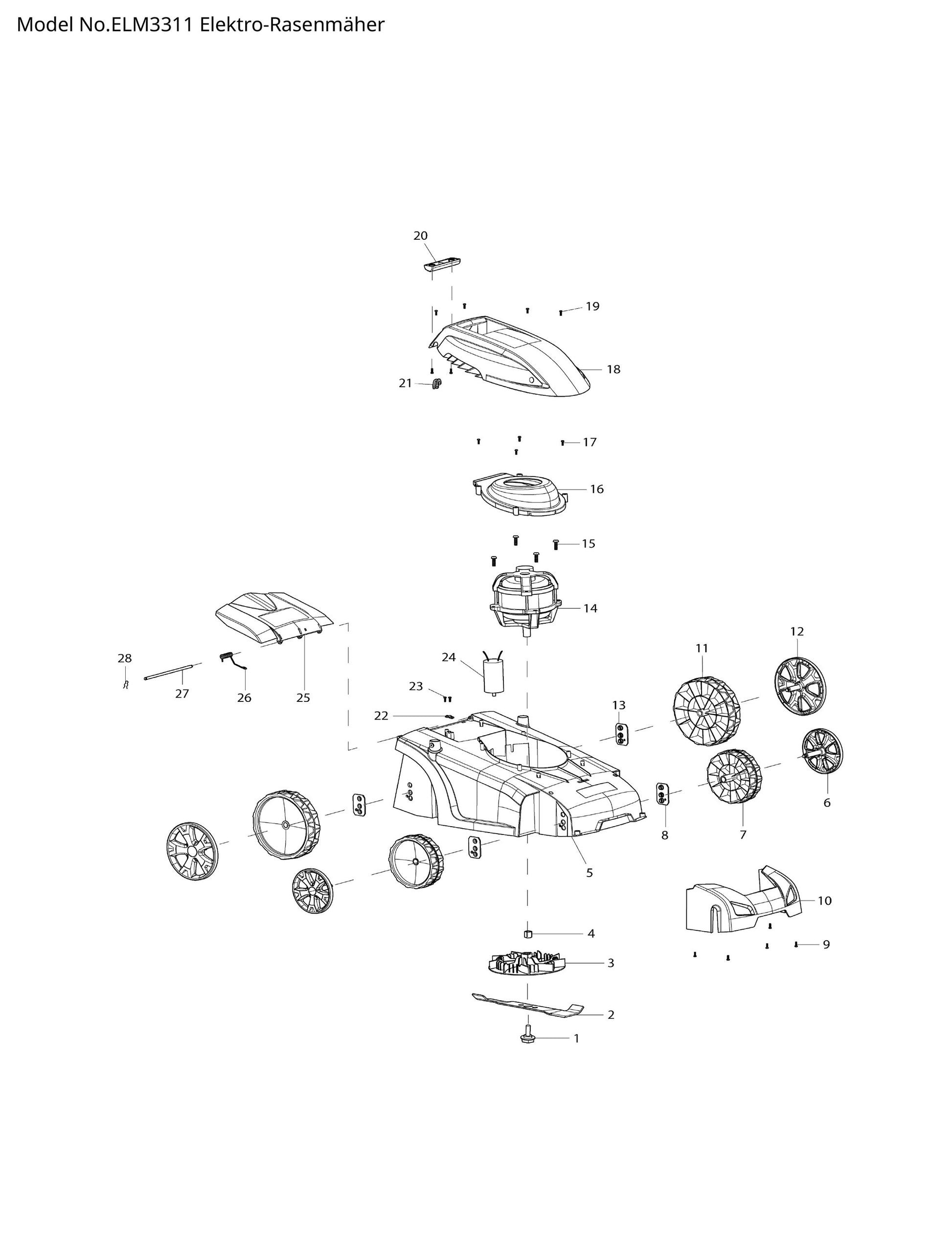 Hier findest du alle Ersatzteile für deinen Elektro-Rasenmäher ELM3311 von Makita. Unsere Ersatzteile stammen alle vom Hersteller Makita.