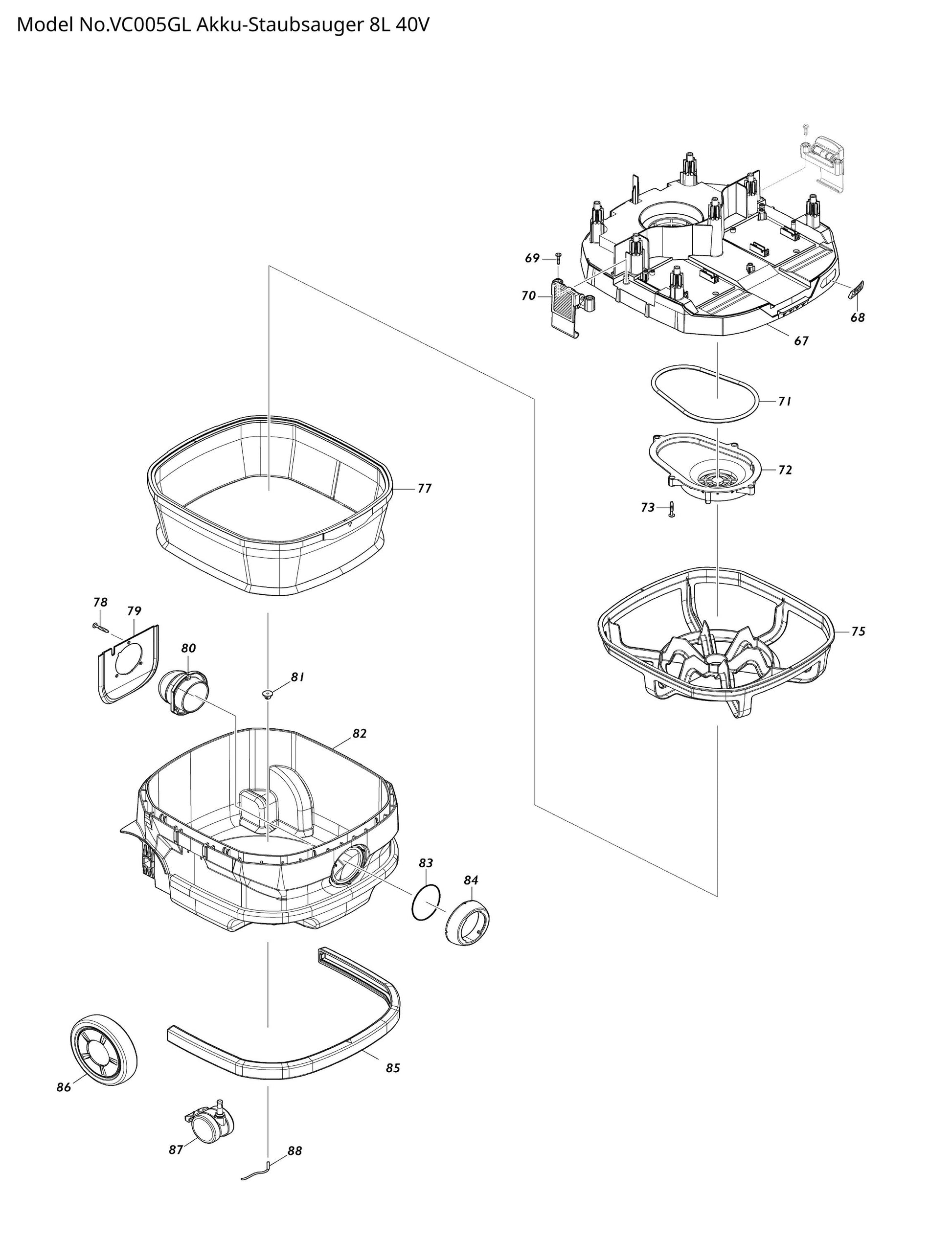 Hier findest du alle Ersatzteile für deinen Akku-Nass-und-Trockensauger VC005G von Makita.