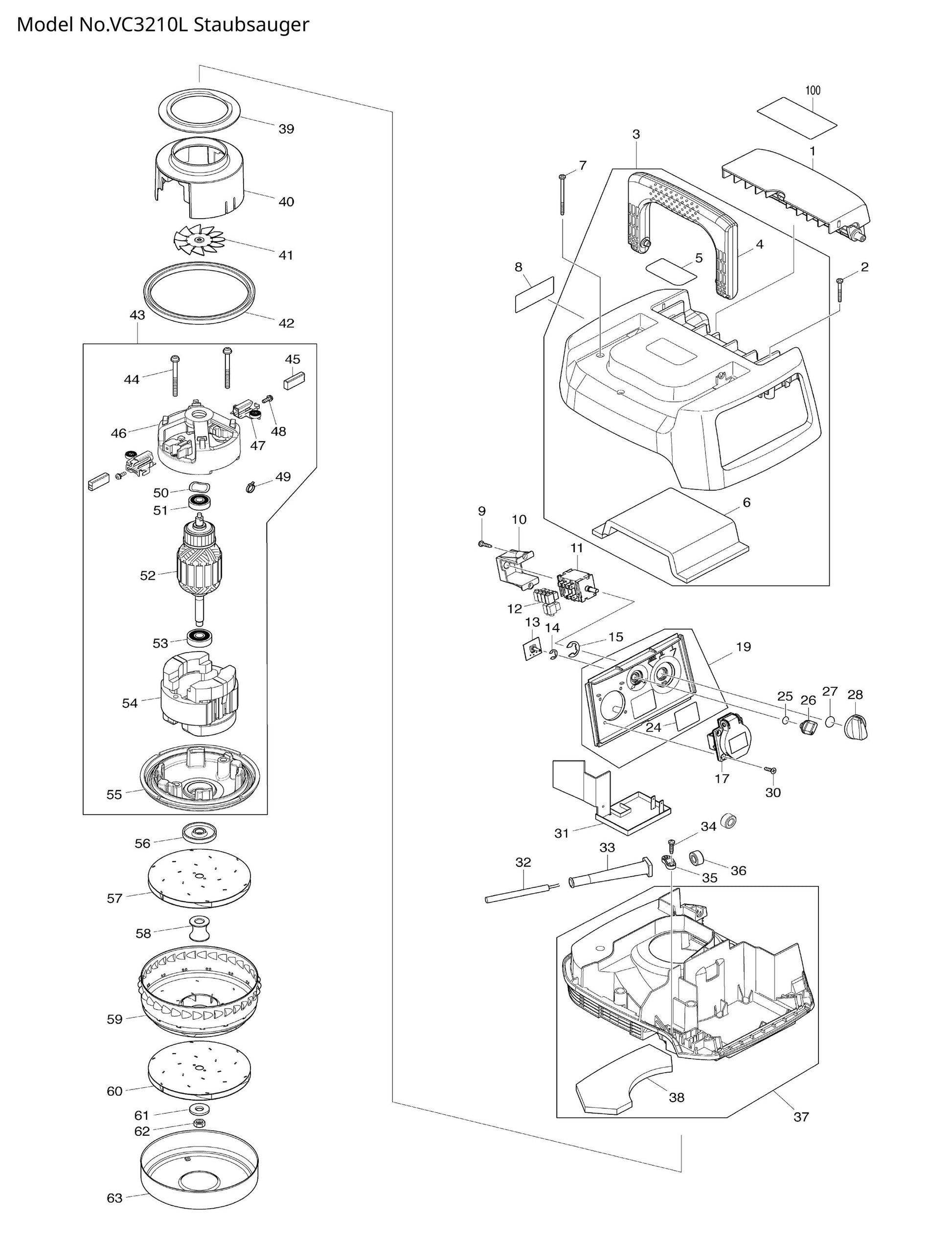 Hier findest du alle Ersatzteile für deinen Staubsauger VC3210L von Makita.